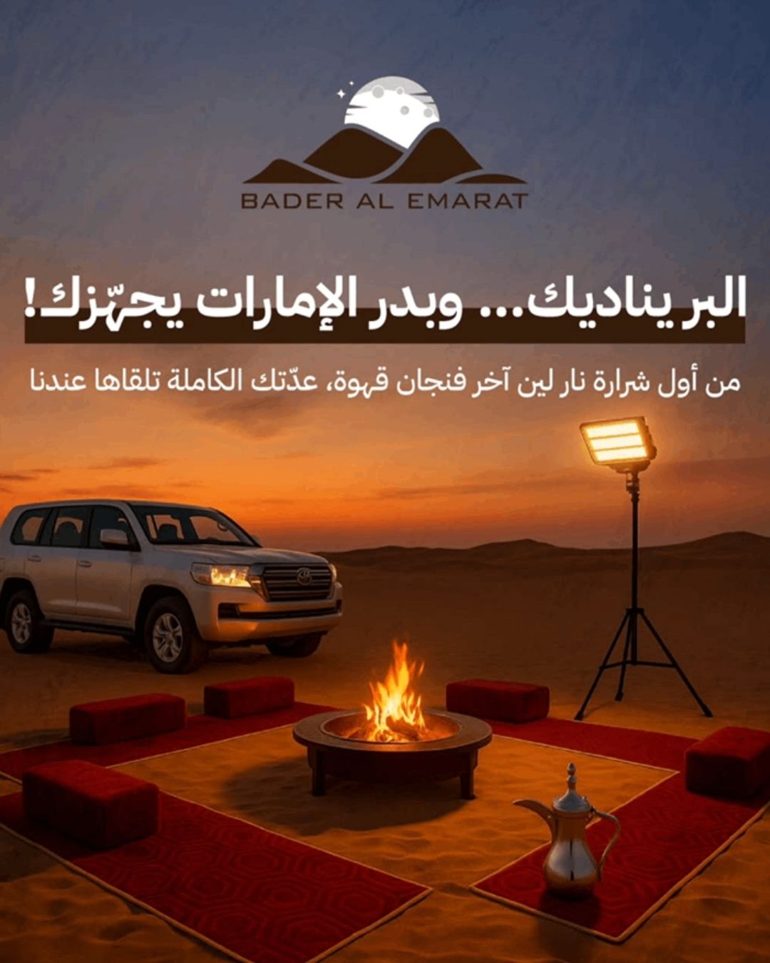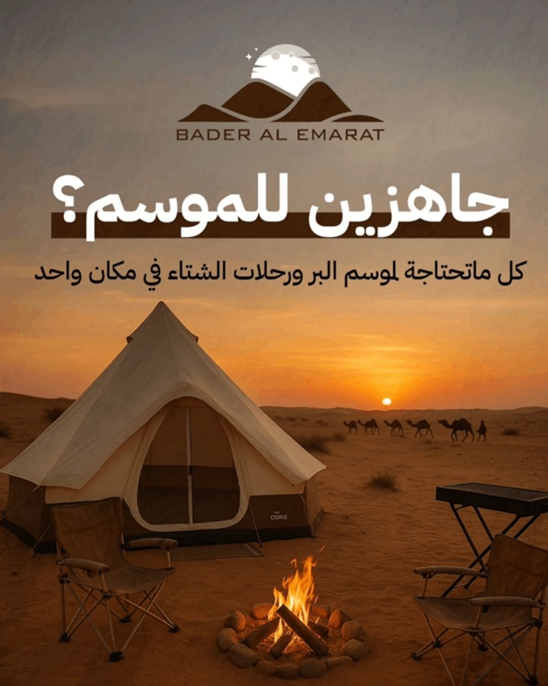 الوصف: مشروع بدر الإمارات للرحلات والصيد هو متجر إلكتروني متخصص في توفير منتجات مميزة وعالية الجودة لعشاق الرحلات والتخييم والصيد. نعمل على تقديم تشكيلة متنوعة من الأدوات والمنتجات التي تلبي احتياجات محبي المغامرات الخارجية، مع الحرص على اختيار منتجات عملية ومتينة وتناسب أجواء الرحلات في الإمارات. رؤيتنا هي أن نكون الوجهة الأولى لكل من يبحث عن تجهيزات الرحلات الموثوقة، مع تقديم تجربة تسوق سهلة وسريعة وجودة تليق بعملائنا..